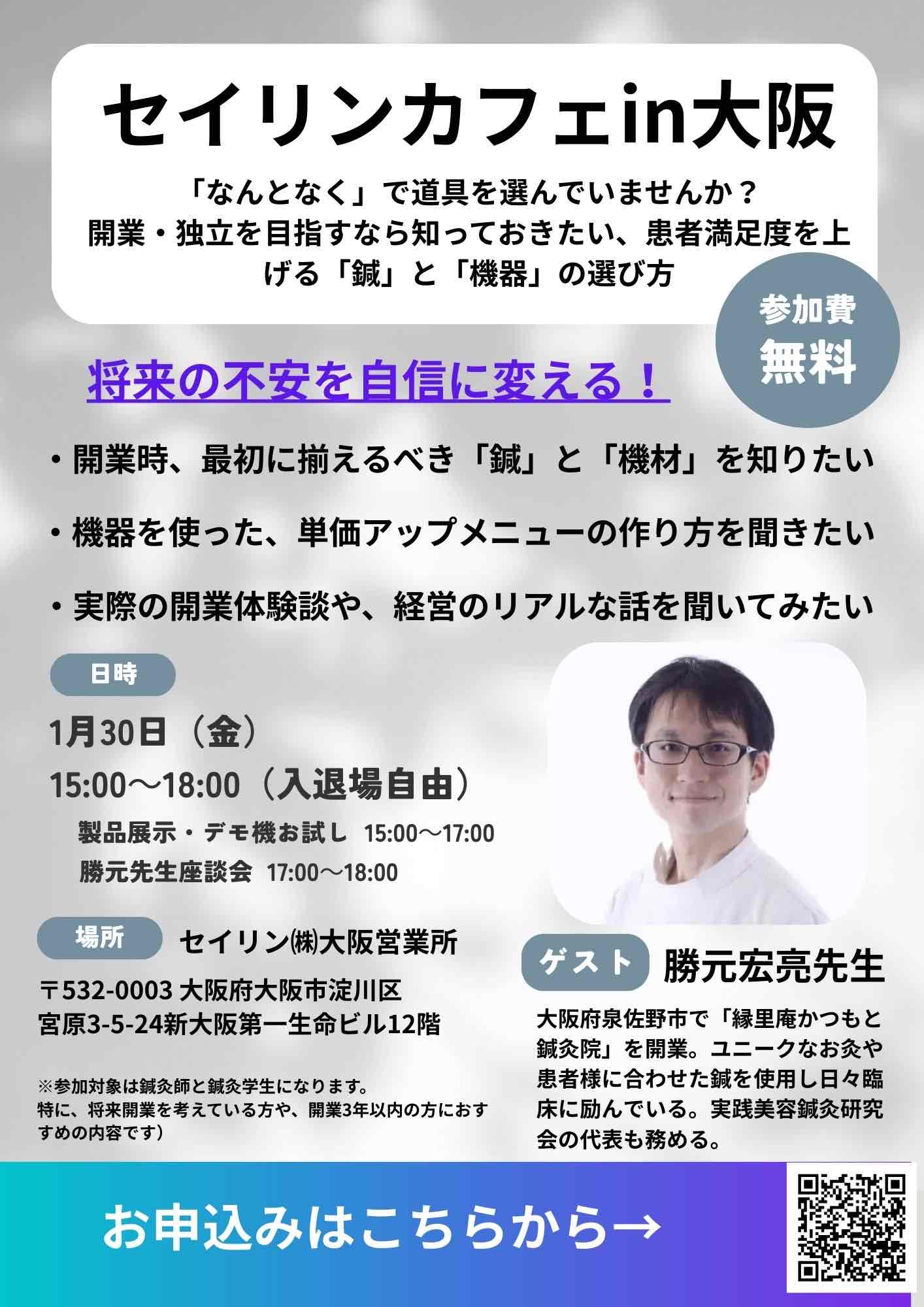 【セイリンカフェ in 大阪☕】 ~お茶を飲みながら、製品を試してみませんか~ 今回は製品体験に加え、特別ゲストとして勝元宏亮先生をお迎えし、少人数の座談会を開催します✨ ✓ 鍼灸院開業時に必要な物を知りたい ✓ 治療メ […] |